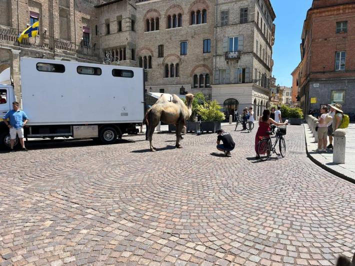Un nostro gazzareporter ci ha inviato una serie di foto, di un'insolita passeggiata in piazza Garibaldi. Protagonista... un cammello (e la sua accompagnatrice).