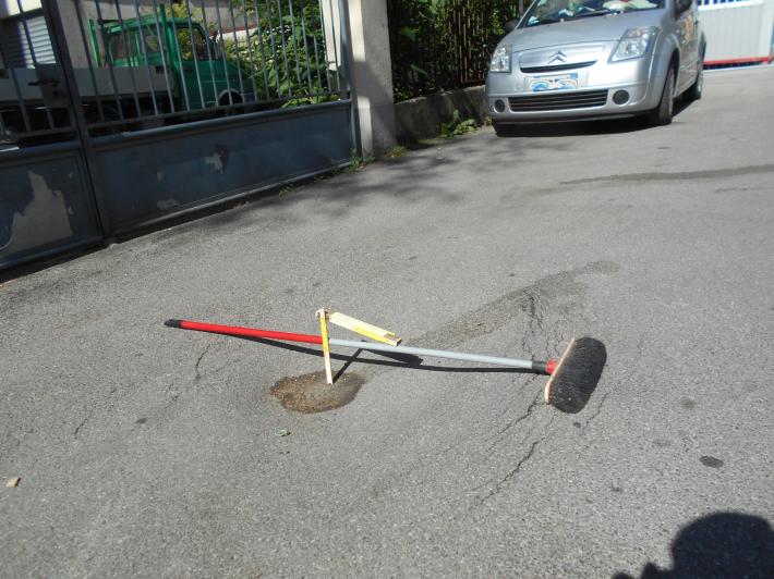 Un nostro gazzareporter ci segnala con foto, ma soprattutto con perizia (la scopa per mostrare il livello della superficie, il metro per mostrare quantitativamente la profondità della buca) le buche presenti in via Augusto Migliavacca: pericolose ma anche dannose per i veicoli.
