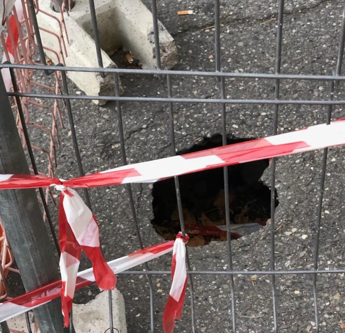 In strada Buffolara sono tre settimane, ci segnala un gazzareporter, che la circolazione è ostacolata da un buco (transennato) in mezzo alla strada.