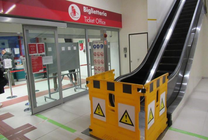 Tutto qui? No. Di fronte alla biglietteria, che si trova al livello intermedio della stazione, è bloccata la scala mobile per la salita. Viene spontaneo chiedersi: il 2023 è iniziato bene per la nostra stazione?