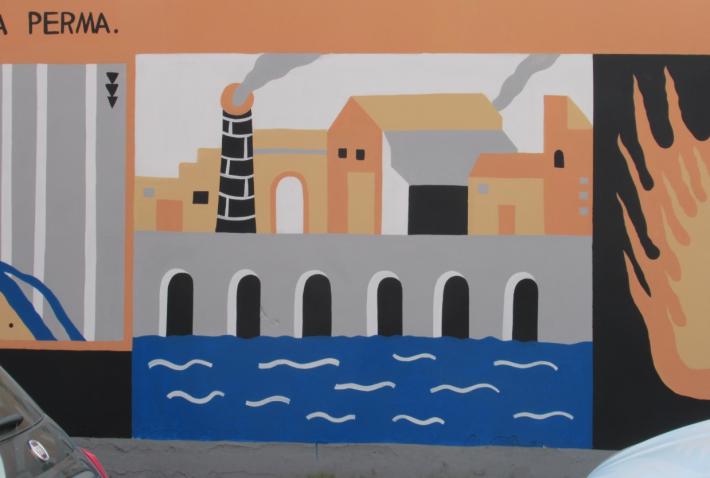 Realizzato nel giugno scorso da Art Lab, è un esempio di street art «legale» (cioè autorizzata) utile per ravvivare muri che, altrimenti, non avrebbero alcuna storia da raccontare.