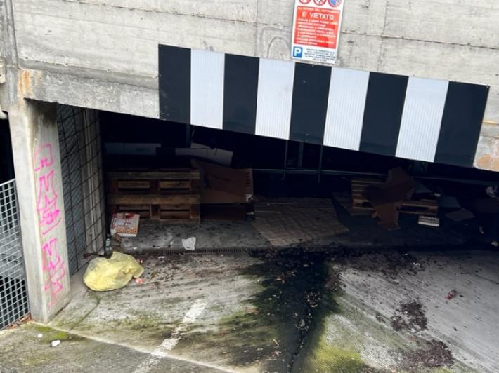 Un lettore invia queste foto e segnala "nuovamente situazione di degrado nel parcheggio sotterraneo fra via Trieste e via Lombardia, a due passi dal centro".