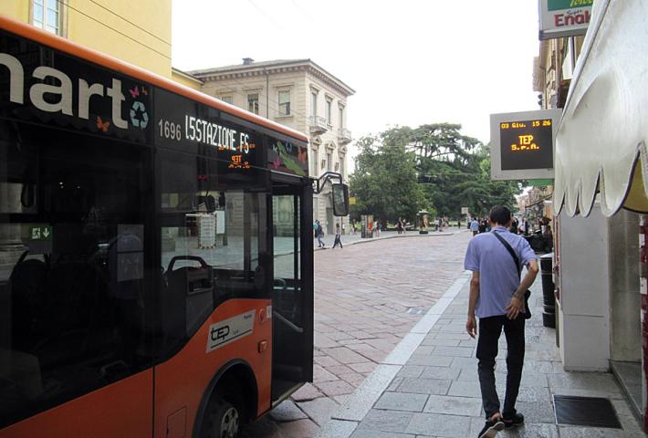 Eppure alle fermate del Teatro Regio e del monumento al Partigiano compare la scritta della deviazione delle linee sul Lungoparma, e non compare la consueta schermata dei minuti mancanti all’arrivo dei bus. Questa «messaggistica» può far pensare che gli autobus 1 e 15 non passano in via Garibaldi ma sono deviati sul Lungoparma.