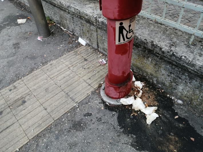 "Invio una foto del marciapiede di via Zarotto 94. Alla fermata degli autobus 5 e 9 non si sa dove mettere i piedi, tale è la mancanza di igiene per escrementi vari"
