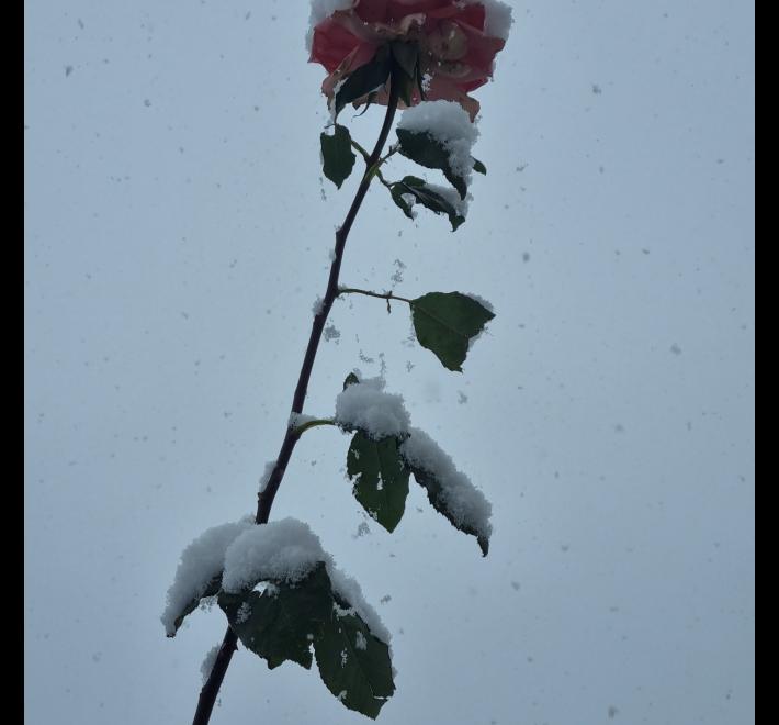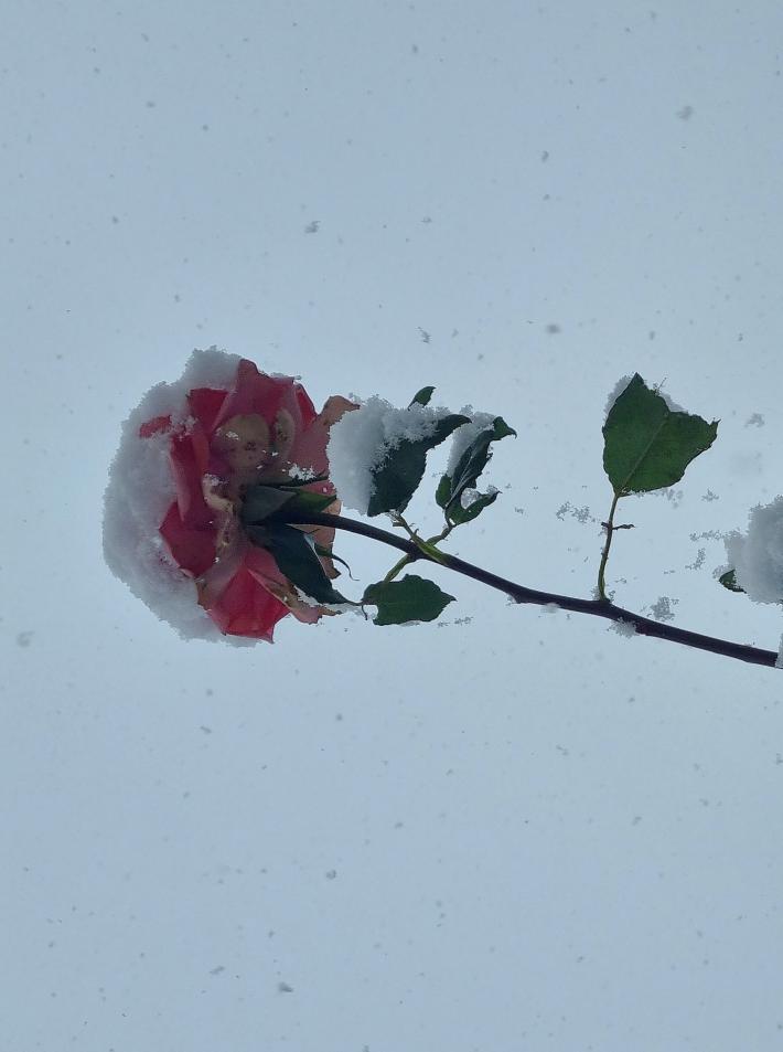 Daniela Zelaschi invia questa foto e commenta: "La poesia della prima neve sulla rosa ancora fiorita. Foto fatta a Tarsogno".