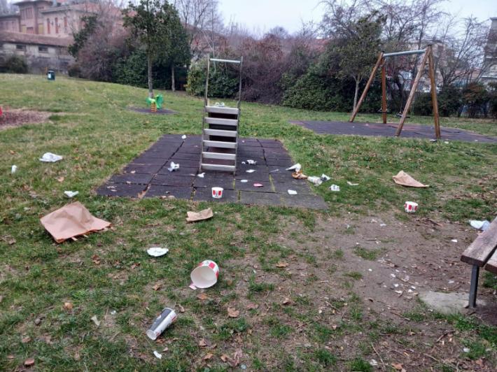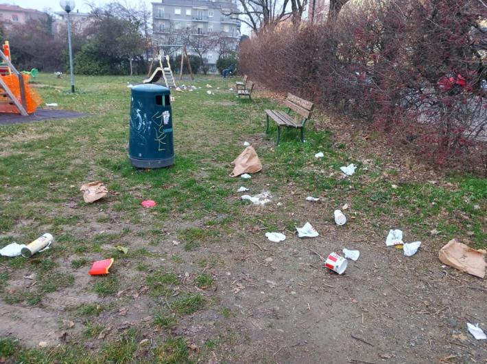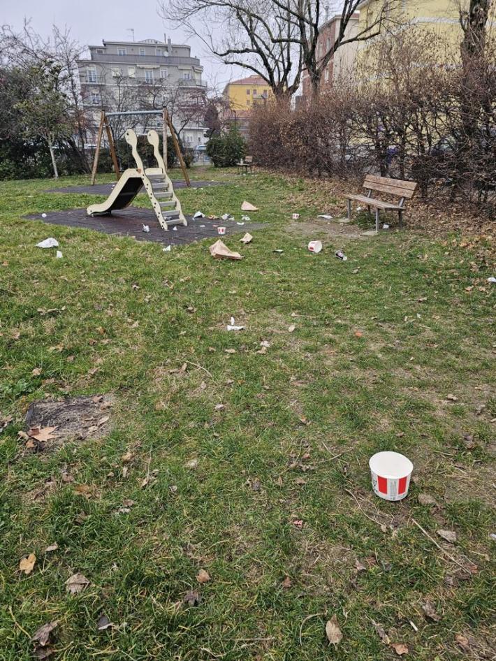 Via Leporati: per l’ennesima volta l’area bimbi del parco delle Magnolie che si trova tra viale dei Mille e l’ospedale Maggiore viene sporcata da bande di ragazzini che di sera fanno quello che vogliono senza nessun controllo. Con i rifiuti che lasciano ovunque l'area giochi diventa praticamente inaccessibile. La rabbia dei residenti: ma dov’è finita la polizia municipale?