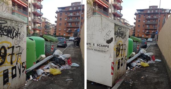 Vorrei mostrare alla città di Parma e agli organi competenti queste due foto da me scattate nei giorni scorsi in via Brambilla, laterale via Montebello - scrive la lettrice Giuseppina Littorano - nei pressi di una campana di vetro e di un raccoglitore di abiti usati. Spesso capito da quelle parti e c' è sempre una ammucchiata di roba che è indecente.