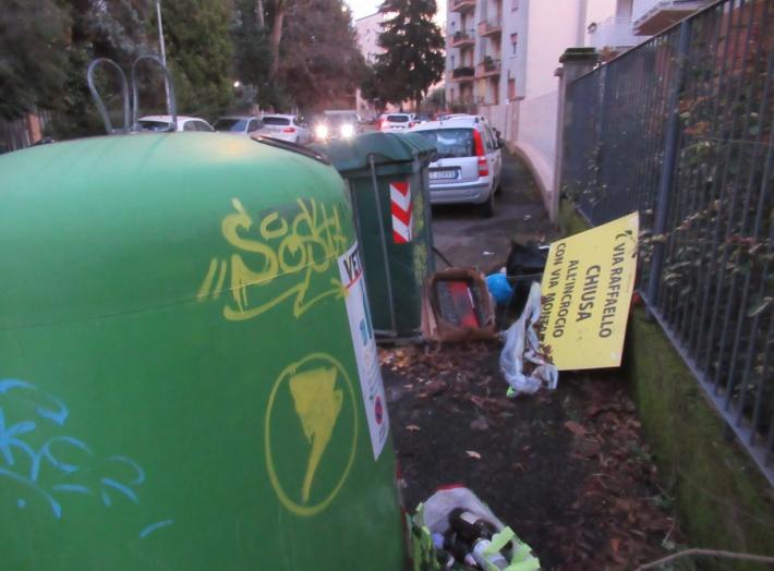 «Siamo in via Monte Bardone, una laterale – continua il gazzareporter – di viale Duca Alessandro, e questo materiale occupa lo spazio per il passaggio dei pedoni visto che il marciapiede lì non esiste. E mi fa molto effetto vedere che c’è anche un cartello che definirei “ufficiale”, che indica la chiusura di una strada vicino a via Montanara. È davvero strano vedere come rifiuto abbandonato un cartello del genere, tipico di lavori effettuati dal Comune o da qualche ditta che ha ricevuto l’incombenza di svolgerli».