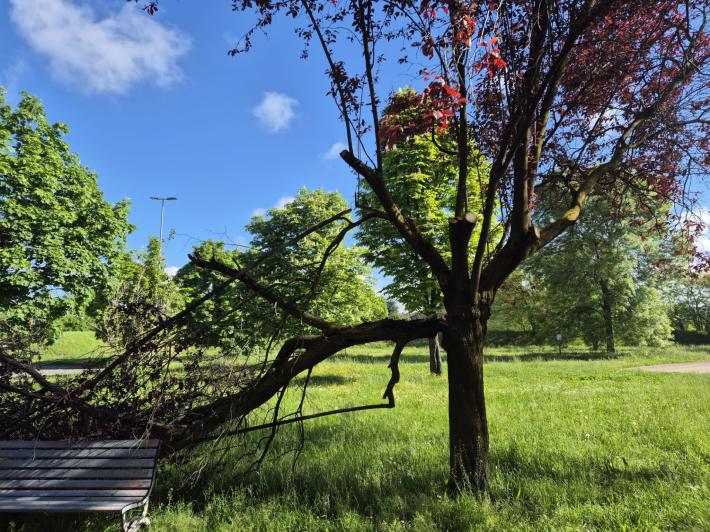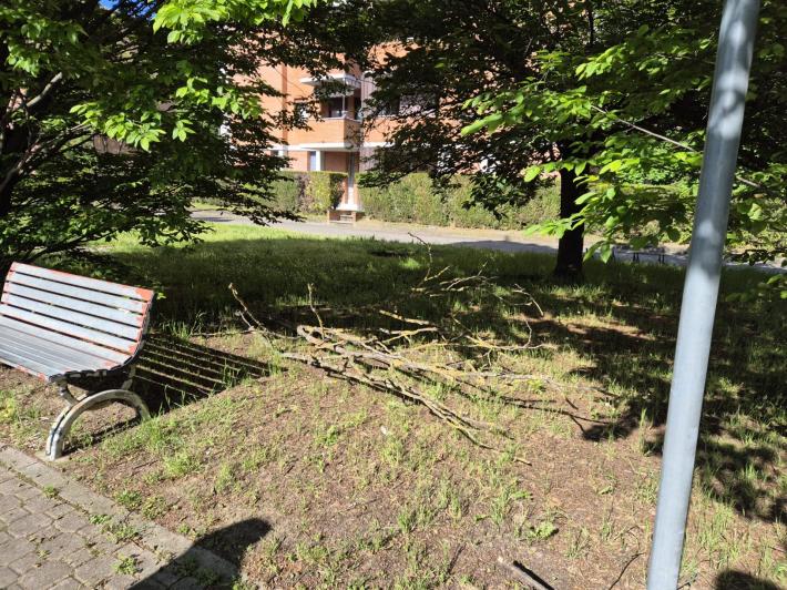 Un gazzareporter ci invia alcune foto (segnalando la situazione di pericolo) del parco Juan Mirò e in stradello Amos Nattini. Si vedono rami crollati sulle panchine e sul vialetto e tronchi spezzati.