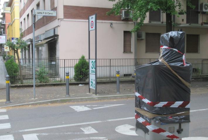 Righe blu in arrivo in viale 7 Fratelli Cervi e strade vicine: da poco tempo sono stati installati i parcometri che serviranno per pagare la sosta in una vasta area finora risparmiata dall’obbligo del pagamento. Le macchinette sono ancora «impacchettate» ma sono perfettamente riconoscibili.