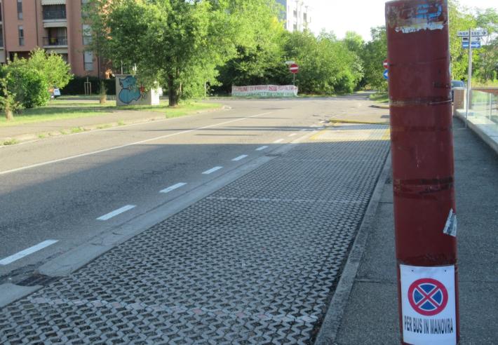 Poco oltre il nuovo capolinea è ben visibile la contestazione contro un progetto per la realizzazione di una rotatoria all’incrocio con via Picasso, che penalizzerebbe la «Picasso Food Forest», una forma di parco pubblico con piante e alberi da frutto, a disposizione dei cittadini. Questa rotatoria – gira voce nel quartiere – se realizzata molto ampia permetterebbe all’autobus di invertire la marcia e passare nuovamente in via Savinio.