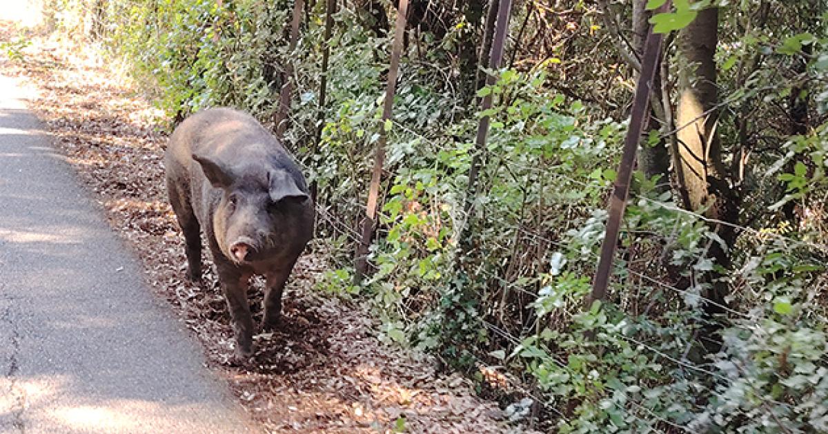 "Ecco un incontro ravvicinato ieri 15 agosto sulla strada sterrata verso i Lagoni, speriamo sia scappato a un contadino.."