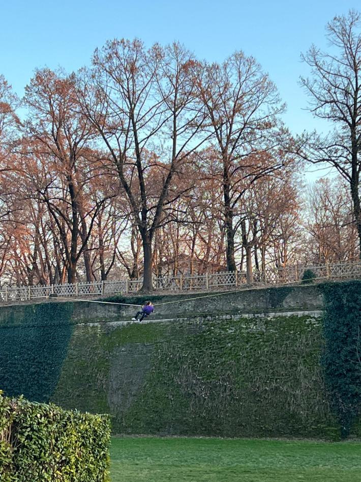 Non è la prima volta che vengono avvistati dei "funamboli" sui bastioni della Cittadella, appesi alle funi per qualche decina di metri. Un lettore li ha fotografi e ha inviato le foto al sito, chiedendosi: "Ma non è un po' rischioso?".