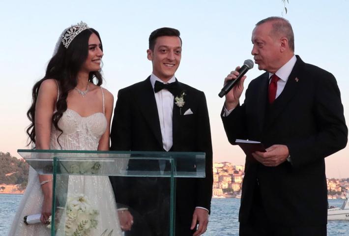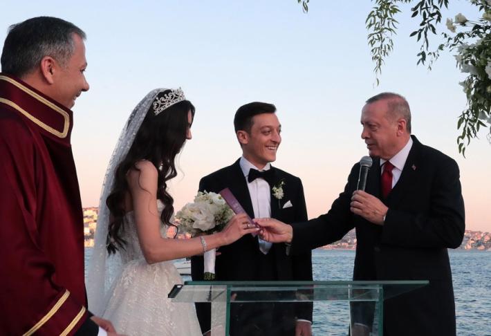 Il presidente turco Recep Tayyip Erdogan è stato testimone di nozze dell’ex nazionale tedesco Mezul Ozil, al matrimonio che si è celebrato ieri in un hotel di lusso sulle rive del Bosforo.