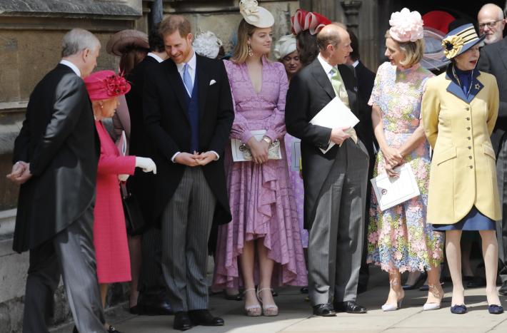 Presenti alla nozze, la regina Elisabetta in capottino rosa shocking accompagnata dal principe Filippo. Pippa in un abito di Kate Spade color blu cielo, con tanto di cerchietto di velluto imbottito, passione recente di influencers e 'it girls'. C'erano anche Sarah Ferguson, in un tubino aderente rosa antico, e la figlia Beatrice con il fidanzato italiano Edoardo Mapelli Mozzi. A sorpresa è arrivato anche il principe Harry ma senza Meghan che, a una settimana dalla nascita del suo primo figlio, probabilmente non si sentiva di partecipare a un evento mondano. Assenti Kate e William, impegnato con la finale di Fa Cup, la Coppa d’Inghilterra.