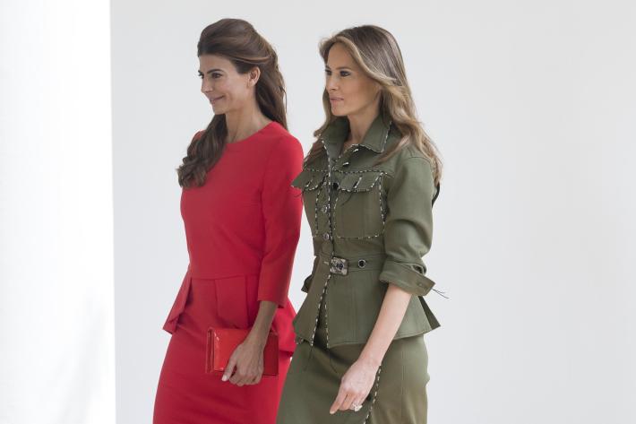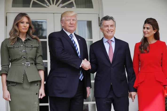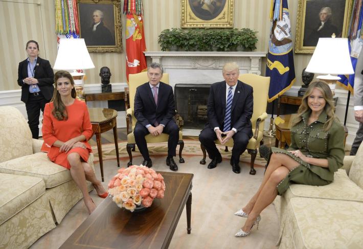 Un incontro dove decisamente, la scena viene rubata dalle due first lady. Belle e eleganti entrambe. Il presidente degli Stati Uniti Donald Trump ha accolto alla Casa Bianca il presidente argentino Mauricio Macri. All’arrivo presso la south lawn della residenza presidenziale Trump e Melania hanno dato il benvenuto al al presidente Macri con la moglie Juliana Awada. Melania in verde militare e la collega Juliana.