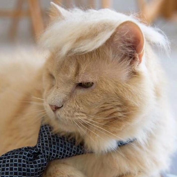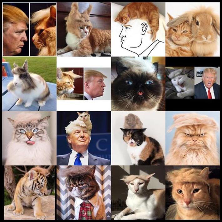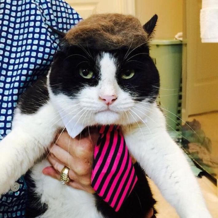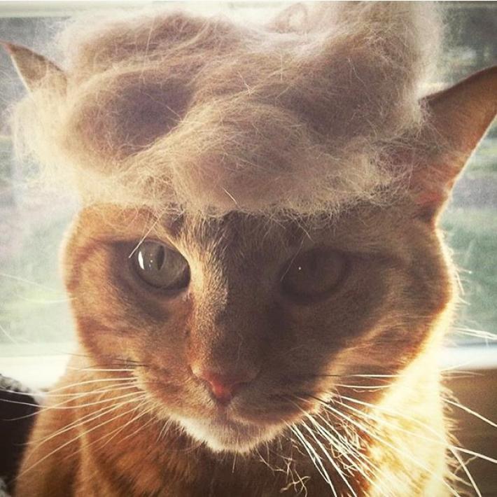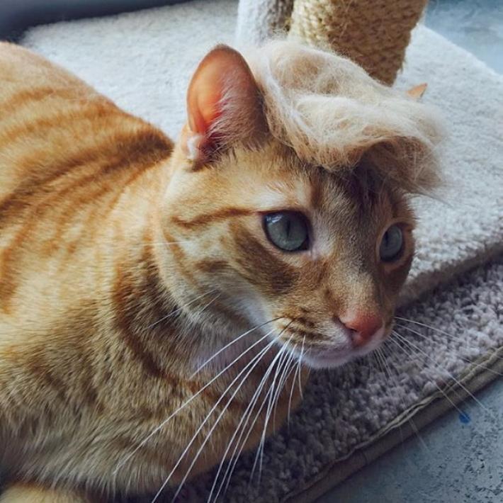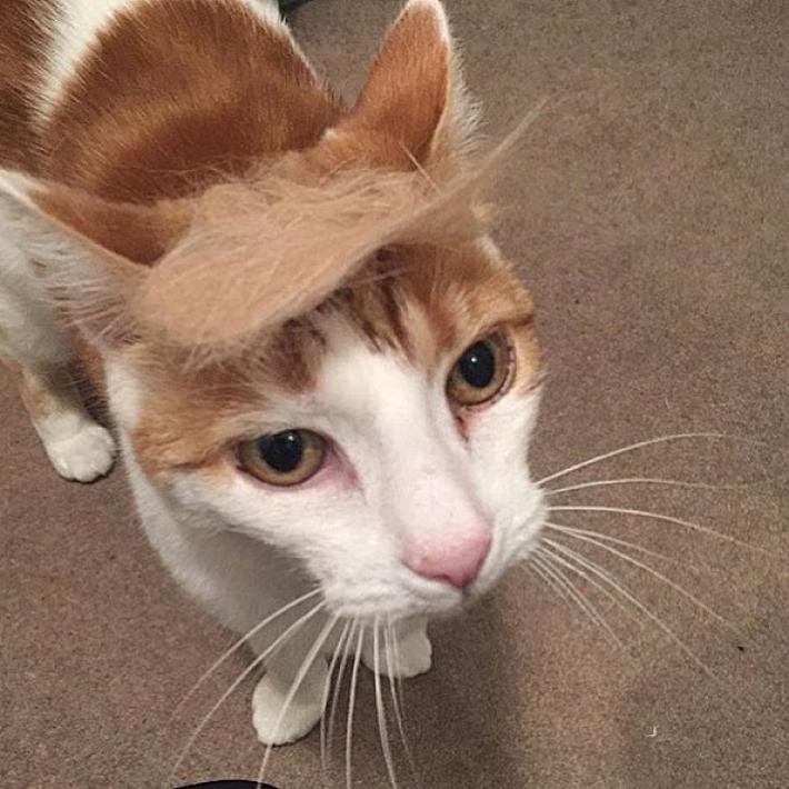 L'artista giapponese Hiromi Yamazaki ha ideato copricapo e parrucche bizzare per i suoi gatti, ottenute dalla peluria degli stessi animali. Ovviamente non serve molta fantasia per capire che ll'ispirazione nasce da trump e dall'hashtag #trumpyourcat, diffuso durante la campagna elettorale per le presidenzaili Usa.