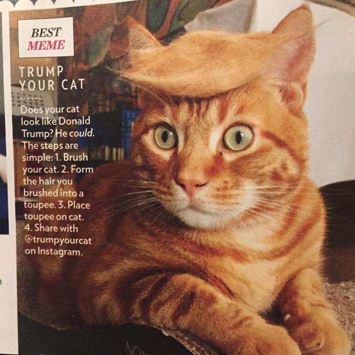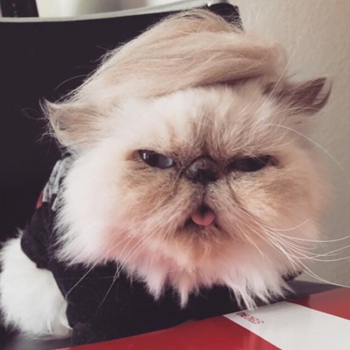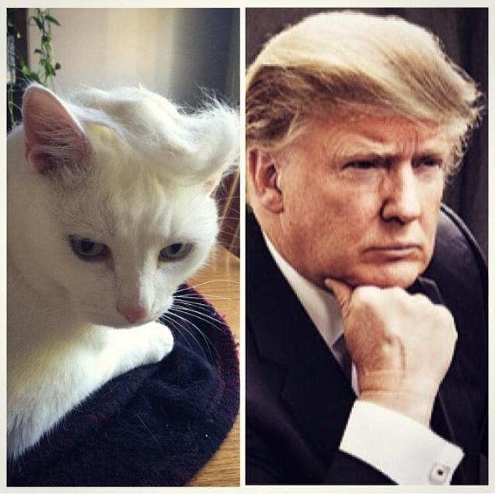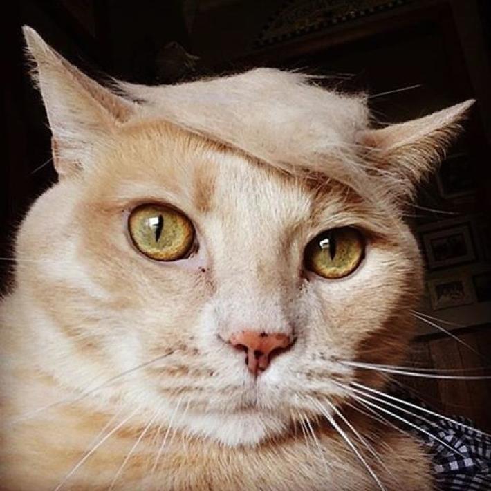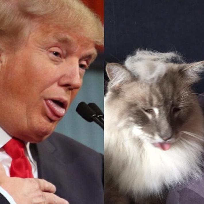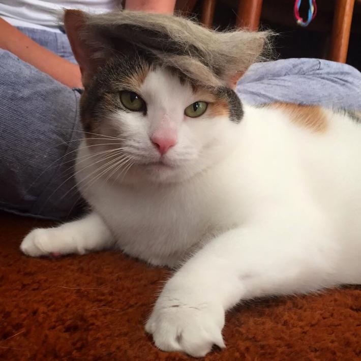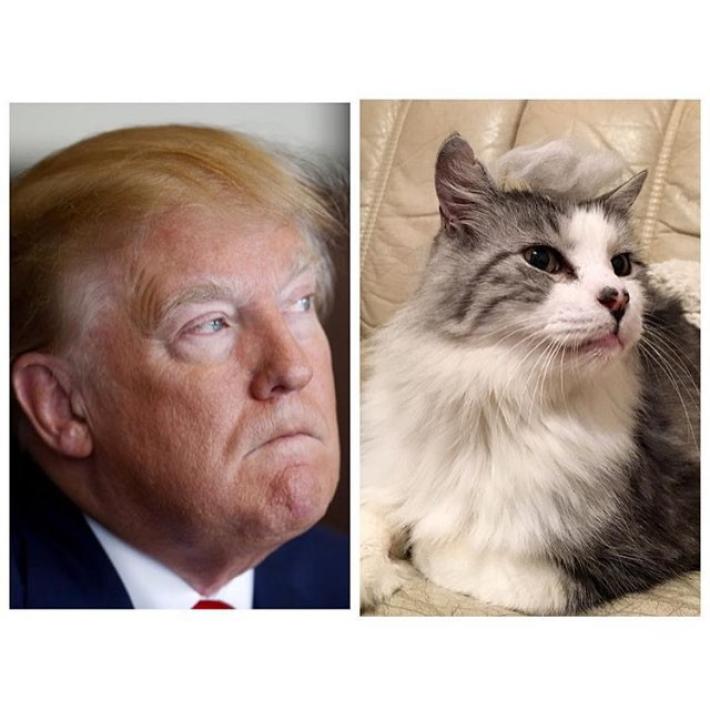 L'artista giapponese Hiromi Yamazaki ha ideato copricapo e parrucche bizzare per i suoi gatti, ottenute dalla peluria degli stessi animali. Ovviamente non serve molta fantasia per capire che ll'ispirazione nasce da trump e dall'hashtag #trumpyourcat, diffuso durante la campagna elettorale per le presidenzaili Usa.