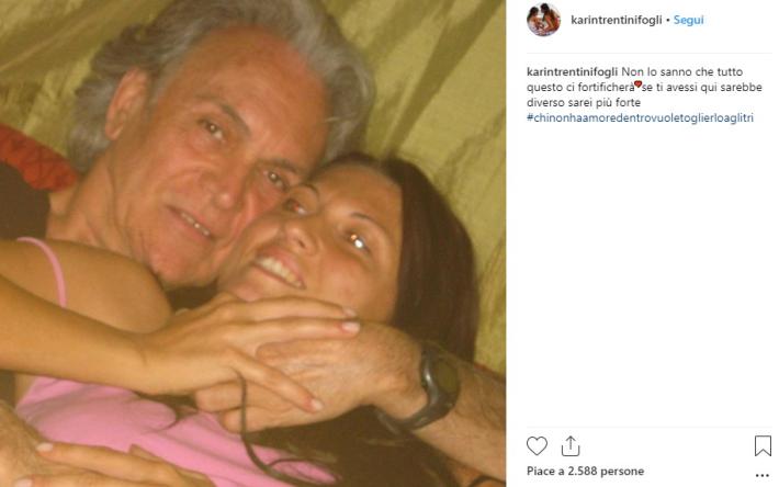 "Non lo sanno che tutto questo ci fortificherà. Se ti avessi qui sarebbe diverso sarei più forte". Lo scrive Karin Trentini, moglie di Riccardo Fogli, sul suo profilo Instagram. Un'evidente risposta alle accuse di tradimento avanzate da Fabrizio Corona durante l'ultima puntata de L'Isola dei famosi. Corona ha dato a Fogli del "cornuto"; il cantante ha pianto in diretta. Oggi è arrivata la notizia della rimozione di capoprogetto e alcuni autori del programma, dopo questo episodio, contestato anche da molti spettatori sui social network.