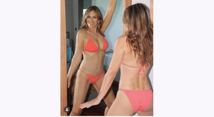 Liz sta promuovendo la sua linea di costumi Elizabeth Hurley Beach. La modella? Lei stessa. È proprio lei, infatti, a indossare i diversi modelli per mostrarli al suo pubblico. Che, più che dall’abbigliamento, rimangono stupiti dal fascino della star.