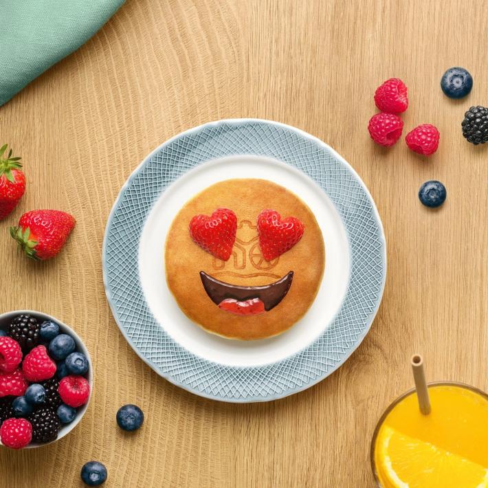 Un alimento semplice e pratico che offre la possibilità di iniziare la giornata con una colazione sempre diversa, grazie alle farciture che permettono di giocare con la fantasia ed esprimere la propria creatività. Un prodotto diventato un must della prima colazione per 1 italiano su 3 tanto che viene consumato da 13 milioni di persone (Fonte Doxa/Mulino Bianco). Per l’occasione Mulino Bianco ha ideato un set di dieci sticker personalizzati, che vedono come protagonisti il Pancake e gustosi ingredienti utilizzati per interpretare le diverse espressioni tipiche delle emoji. Dieci GIF animate, caricate sul canale GIPHY di Mulino Bianco, che mostrano diverse sfumature per esprimere la propria felicità, replicabili a casa in versione ricettata con cioccolato e frutta fresca, come ananas, fragole e mirtilli.