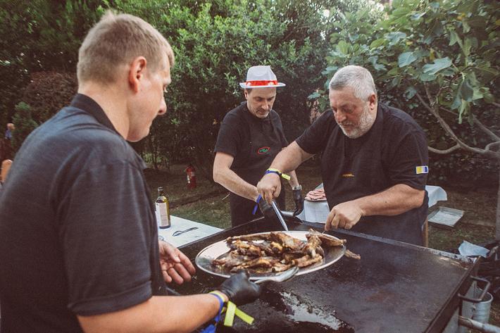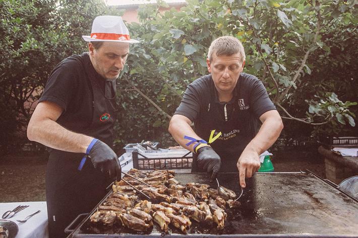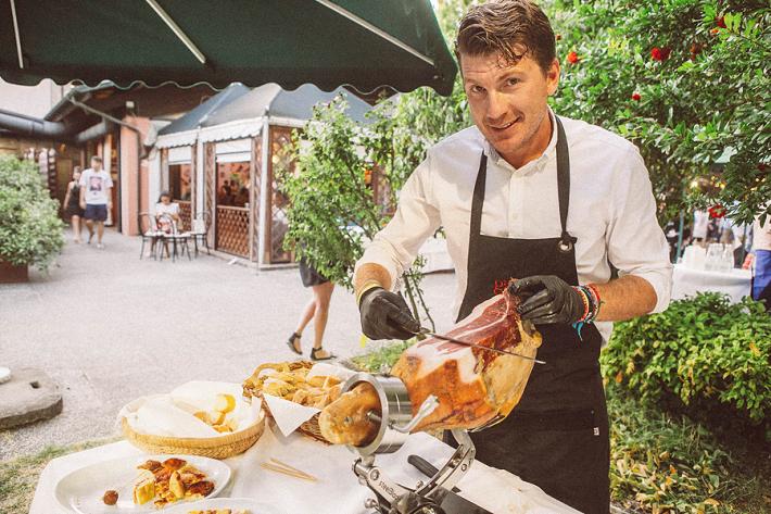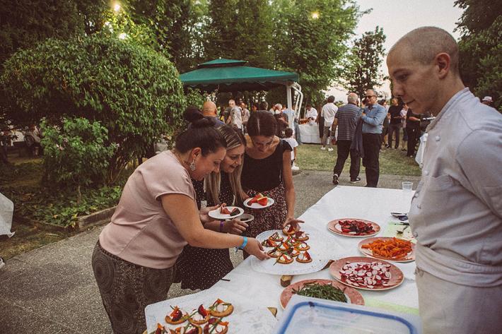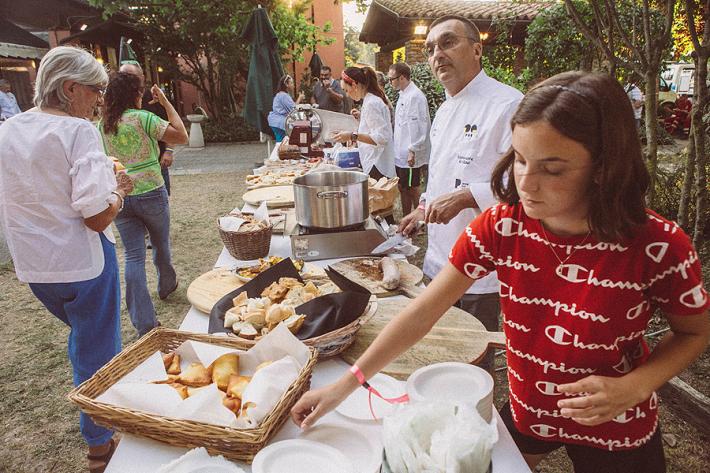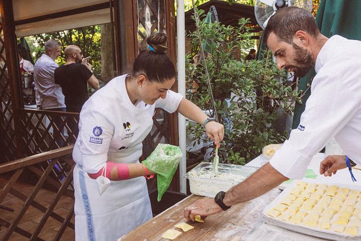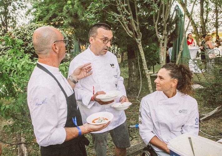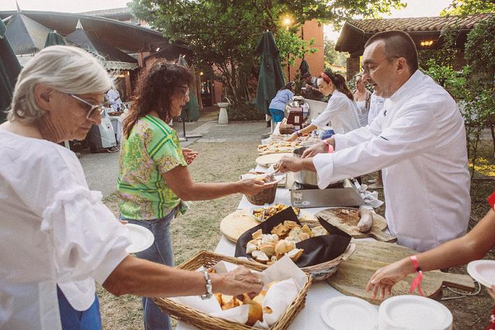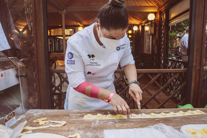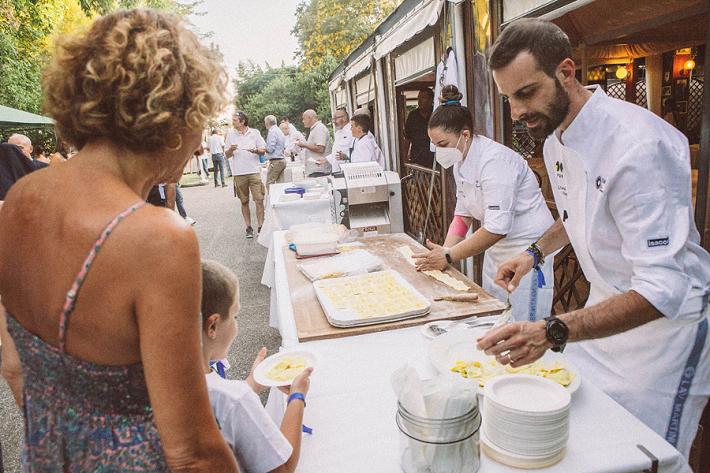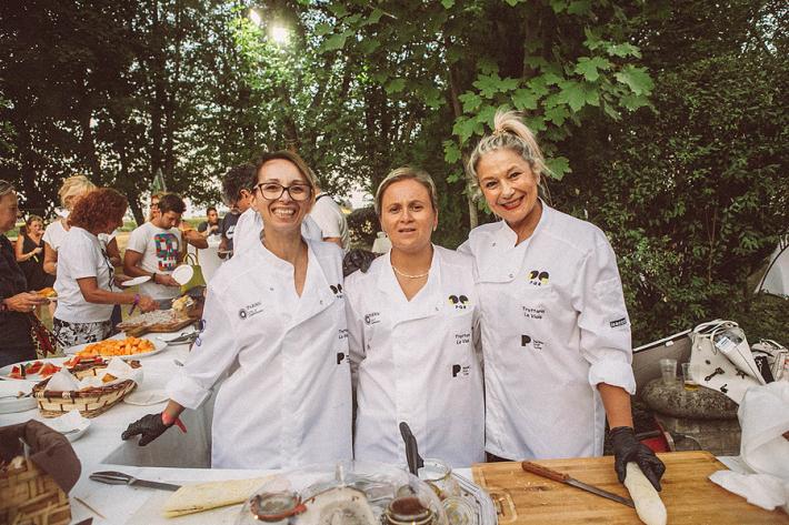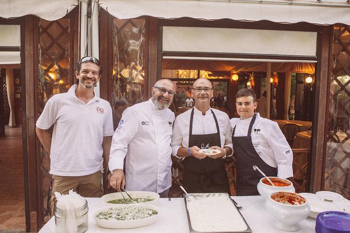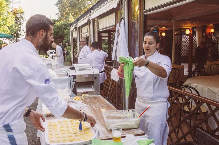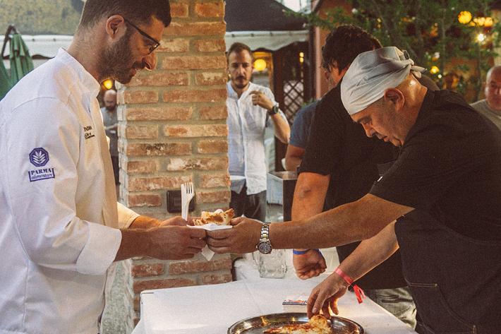 In cucina, al fianco degli chef Fabio Romani e Nicole Zerbini de La Porta a Viarolo a capitanare la squadra, si sono schierati gli chef dei ristoranti 12 Monaci, Labirinto, Stendhal da Francesco, Al Vèdel, Trattoria Le Viole, Osteria Antica Rocca, La Vecchia Fucina, Tri Siochett, Km90, Vecchio Borgo, Squid, Due platani, Antichi Sapori, Antica Hostaria delle Tre Ville, Trattoria Dai Sibani, Unicorno, chef Mariano Chiarelli, pastry chef Enrico e Marcella Brancato e Ugo Bertolotti, per un "gran buffet" d'eccezione pensato per solleticare i palati di tutti.