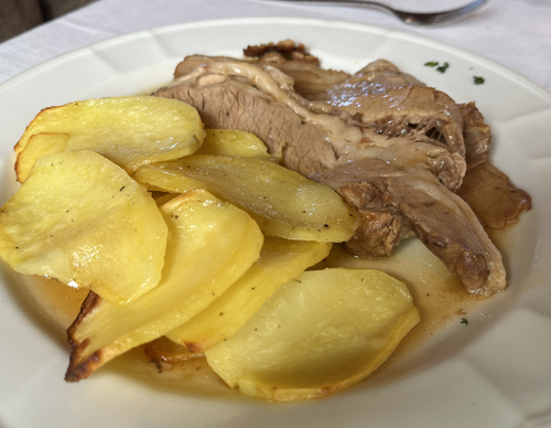 Punta di vitello arrosto, qui in versione senza ripieno, di cui si apprezza la carne tenera e dolce