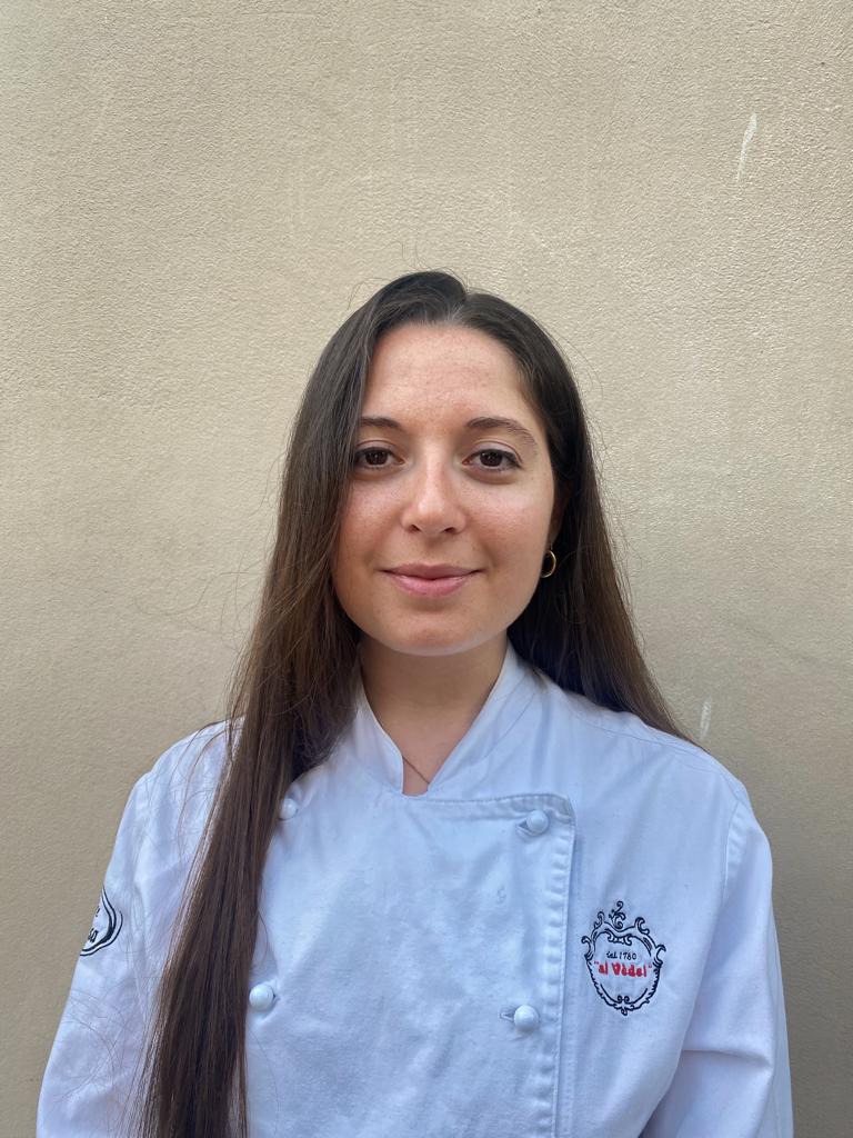 Maturità scientifica e laurea in Economia, dopo un periodo di lavoro in uno studio di commercialisti Federica Rimella è rimasta «vittima» del fascino della ristorazione e nel 2020 ha iniziato il suo nuovo percorso iscrivendosi ad Alma. Concluso brillantemente il corso superiore di cucina italiana, ha lavorato al Cantuccio di Mauro Elli. Oggi è al fianco di Enrico Bergonzi al Vedél.