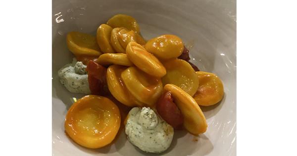 Un anolino, ma senza brodo. Fresco, vegetale, quasi meditativo. È così che Matteo Ricci ha voluto raccontare l’estate parmigiana nella sua versione del più iconico dei piatti locali, servita durante la «Cena al Parco Ducale» che ha visto la brigata del Bistrò del Labirinto affiancarsi a quella di DaMat, gestore del Chiosco del Parco cittadino. «L’anolino è il simbolo della nostra cucina, ma volevo dargli un respiro nuovo. Qualcosa che parlasse di estate, di erbe aromatiche, di orto, senza però perdere il legame con la nostra terra». E’ nato così il suo Anolino estivo, farcito con ricotta al limone e timo, servito su una crema di basilico e accompagnato da pomodorini confit e salsa cruda di pomodoro: una composizione elegante, semplice solo all’apparenza, in cui ogni sapore è studiato per essere riconoscibile ma armonioso. Classe 1997, Ricci è entrato in cucina in punta di piedi, nella brigata dei 12 Monaci. Oggi è un nome in crescita all’interno del Parma Quality Restaurants. «Il confronto con altri chef del Consorzio è un grande stimolo. Ognuno ha un approccio diverso, ma tutti condividiamo la stessa attenzione per il prodotto e per il racconto che il piatto deve saper fare». La sua partecipazione alle Cene al Parco Ducale, rassegna estiva che unisce cucina d’autore e convivialità nel cuore verde di Parma, ha quindi rappresentato un’occasione speciale per esprimere la propria identità. «Servire in un luogo così suggestivo, tra alberi secolari e musica dal vivo, ti restituisce il senso pieno del nostro mestiere: emozionare, anche con una preparazione semplice». Un racconto che, martedì sera, ha preso forma in una forchettata profumata di basilico, timo e pomodoro. Un piccolo anolino che profuma d’estate e sa parlare parmigiano.