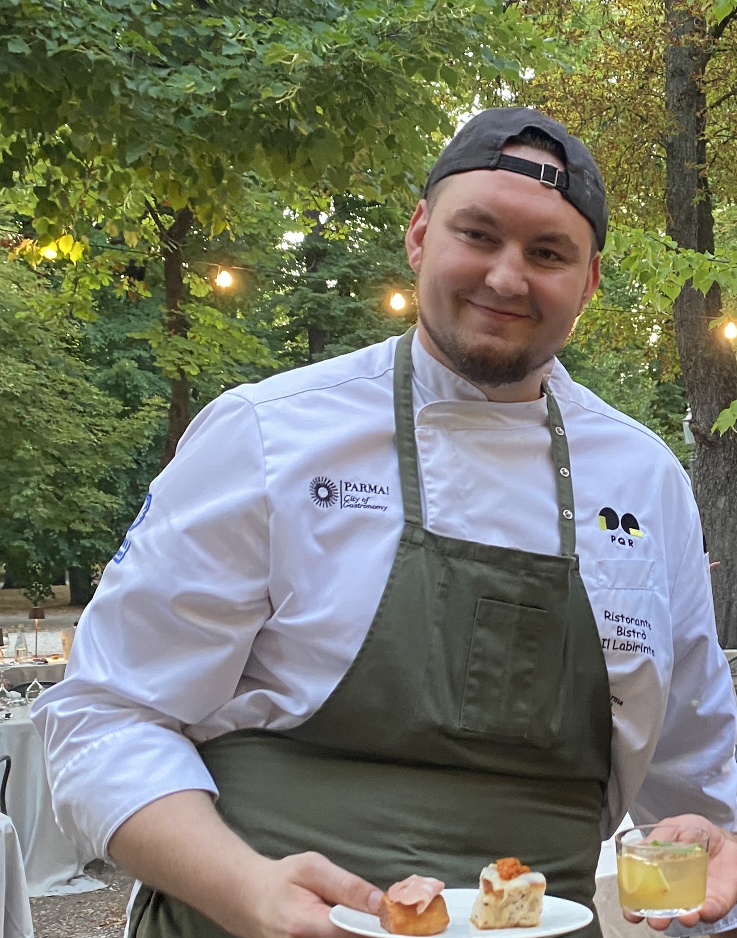 24 anni, diplomato all’alberghiero di Salsomaggiore, Matteo Ricci ha iniziato a lavorare a soli 16 anni al «12 Monaci» di Fontevivo, il suo paese. Una volta terminata la scuola, è stato naturale «fermarsi» al fianco di Andrea Nizzi da cui ha imparato a gestire una brigata. Oggi guida la cucina del «Ristorante Bistrò Il Labirinto».