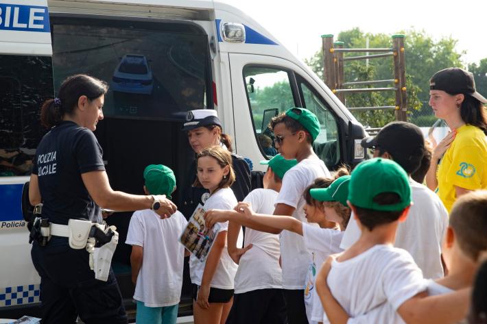 Un «concerto» di clacson e sirene spiegate ha accolto ieri mattina i bambini e le bambine di Giocampus. Un benvenuto speciale arrivato dai mezzi delle forze dell’ordine: pattuglie, radiomobili, unità mobili di carabinieri...
