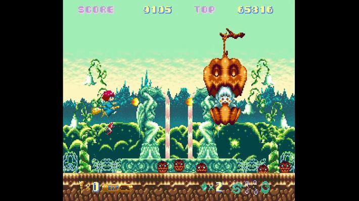 Tra gli anniversari che si celebrano quest’anno il trentennale di Cotton, stravagante serie giapponese di stampo shoot ‘em up firmata da Success che insieme ad altri classici, da Fantasy zone a Parodius, contribuì a portare un approccio umoristico al filone, poi ridefinito dai fan cute ‘em up. Protagonista di Cotton, che esordì nelle sale giochi giapponesi nel 1991 con l’episodio Cotton: Fantastic night dreams, è una giovane strega golosa di caramelle, disposta a tutto pur di accaparrarsene, persino affrontare a cavalcioni della sua scopa volante caterve di mostri assortiti, in una folkloristica fusion di diverse culture, che ricorda il melting pop nippo-greco di C’era una volta… Pollon. In pieno revival, dopo il recente Cotton reboot!, prezioso remake dall’anima vintage con all’interno anche l’originale, il team di Inin e Strictly Limited specializzato in restauri digitali ripropone altri capitoli della saga cult. Si tratta dello spin-off Panorama Cotton, caratterizzato da un inedito impianto 3D, e di Cotton 100%, a metà tra il sequel e la riscrittura riveduta e corretta del primo Fantastic night dreams. Le rispettive trasposizioni sono state curate per offrire al pubblico di oggi una copia fedele al singolo pixel e che spacca il millisecondo dei titoli di allora, letteralmente arcade perfect, operazione tutt’altro che scontata quando si parla di hardware così lontani e di generi ad alta precisione, come in particolare da sempre proprio gli shoot ‘em up. Ogni livello di Cotton 100% è un piccola opera d’arte bizzarra che sprizza simpatia, con tanto di boss in tema, a cominciare da Jack-o’-lantern, la tipica zucca di Halloween.