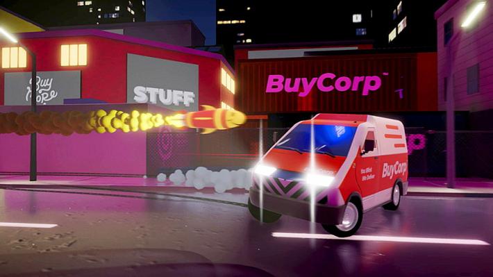 Sfrecciando in un città disegnata in stile cartoon, si combatte a suon di missili e altri power up nel cuore di una follia urbana tra fattorini, che devono sudarsi all’ultimo sangue le consegne, facendo a sportellate ed eliminando fisicamente i colleghi, in una rilettura tutta da ridere degli incubi della fantascienza, come le guerre stradali di Altered carbon di Richard K. Morgan.