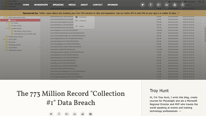 Da tempo Hunt è impegnato a sensibilizzare pubblico e addetti ai lavori sulla questione, attraverso il suo blog e il sito https://haveibeenpwned.com dove si può verificare se il proprio indirizzo di posta elettronica (e quindi i servizi a esso collegati) sia stato immesso nel circuito dei dati rubati. Al di là dello scalpore suscitato da Collection#1, messa a disposizione di chiunque in chiaro, ogni giorno elenchi simili finiscono al centro di compravendite nel mercato nero di internet, di solito all’ombra del cosiddetto dark web.
