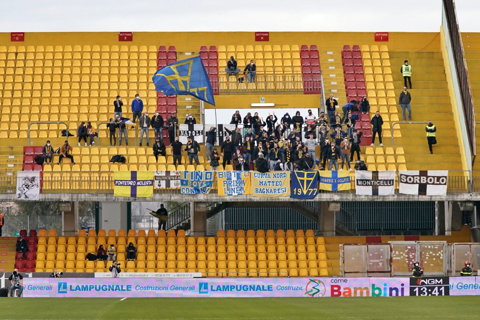 31' Il piccolo spicchio colorato di gialloblù dei tifosi del Parma (75) si fa sentire