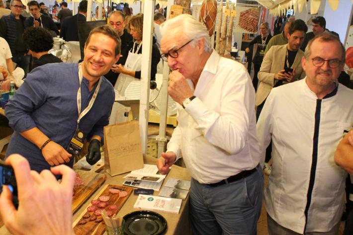 Si tratta del più grande raduno a livello nazionale di allevatori norcini e salumieri per far conoscere le migliori espressioni della salumeria nazionale e aprire un confronto su alcuni temi caldi per tutta la filiera organizzato, all’Antica Corte Pallavicina, dalla famiglia Spigaroli e da Gambero Rosso. Un colpo di scena, salutato dagli applausi di tutti i numerosi presenti, è stato quello della visita, a sorpresa, di Alain Ducasse, chef e imprenditore che gestisce più di venti ristoranti nel mondo, di cui tre premiati con tre stelle Michelin a Monaco, Parigi e Londra. Ducasse e Spigaroli sono amici da anni (lo dimostra anche il fatto che lo stesso Ducasse ha curato la prefazione del libro dedicato a Massimo Spigaroli). La giornata, conclusiva ha riscosso un nuovo, grande successo e si è conclusa con il concorso “Il panino teen-ager: una cosa buona tra le mani” (sesta edizione) vinto da Alessandro Loda, studente all’Istituto alberghiero Magnaghi Solari di Salsomaggiore.