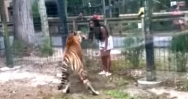 Che rischio! Una donna ha scavalcato il recinto ed ha poi messo la mano nella gabbia di una tigre nello zoo di Cohanzick, nel New Jersey. La tigre ha tentato di morderle la mano, ma la ragazza è riuscita ad allontanarla all'ultimo momento e a evitare così la tragedia. Il video è stato diffuso dalla polizia per individuare la donna.