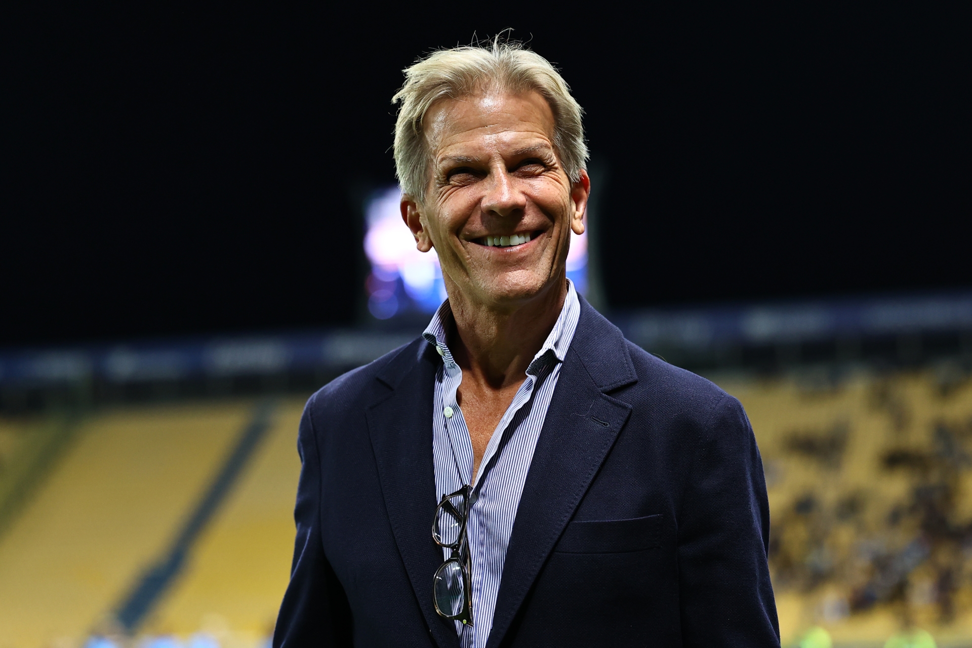 In tribuna, e prima della partita in campo durante il riscaldamento, il presidente Kyle Krause