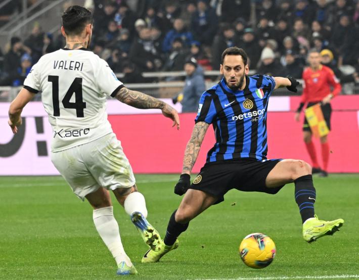 5' L'Inter ha più costante possesso di palla. Tiro pericoloso di Calhanoglu
