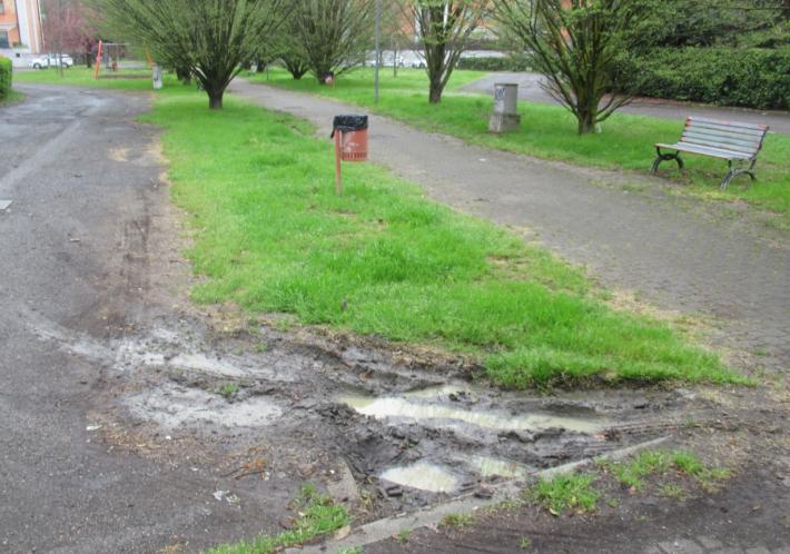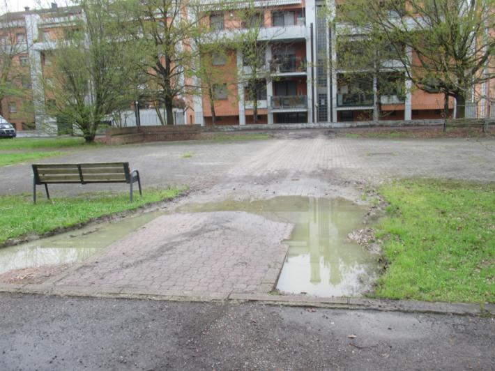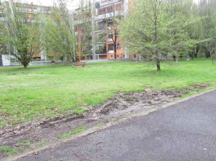 Le tracce del passaggio dei veicoli sono visibili, eccome, negli stradelli pedonali Vernizzi, Tessoni, Nattini e Padova, a lato di via Zoni, vicino alla parte finale di via Sidoli. Si tratta di quattro stradelli chiusi, privi di passi carrabili, che si trovano in una tranquilla area interdetta ai veicoli, arricchita da tante panchine. Nel momento di tornare indietro i veicoli invertono la marcia e attraversano lo stradello centrale Madoi, «sconfinando» nel verde e anche danneggiando la pavimentazione non adatta alle auto. Se piove, nel prato danneggiato si creano vaste pozzanghere.