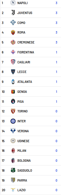 Comincia alla grande il campionato del Como, che nella prima giornata di Serie A batte in casa la Lazio per 2-0. Viceversa, quindi, non parte al meglio la seconda avventura di Maurizio Sarri con i biancocelesti, a un anno e mezzo dall’ultima panchina. Grande entusiasmo al Sinigaglia, in virtù del mercato estivo dei lariani che ha ribadito le ambizioni della società. Un entusiasmo ripagato dagli uomini di Fabregas, che partono fortissimo fin dalle prime battute, distinguendosi per il pressing asfissiante, la qualità delle giocate e la capacità di coinvolgere tutti i calciatori in campo. Tra i più attivi, ovviamente, c'è Paz, ma da sottolineare anche il grando impatto di Ramon e di Jesus Rodriguez: quest’ultimo va vicino al gol al 20' dopo un recupero palla in zona offensiva. Poco dopo Provedel è chiamato alla bella parata sul tentativo di Vojovoda in controbalzo. La Lazio fatica ad uscire e si fa vedere solo dopo la mezz'ora con un tiro di Cancellieri. Il più positivo degli ospiti è Tavares, che sul finire di frazione crea scompiglio nell’area del Como e serve Castellanos, che viene chiuso. La ripresa si apre con uno squillo di Cancellieri, ma al 47' Paz salta Tavares e imbuca per Douvikas, che resiste di fisico su Gila e batte in diagonale Provedel.