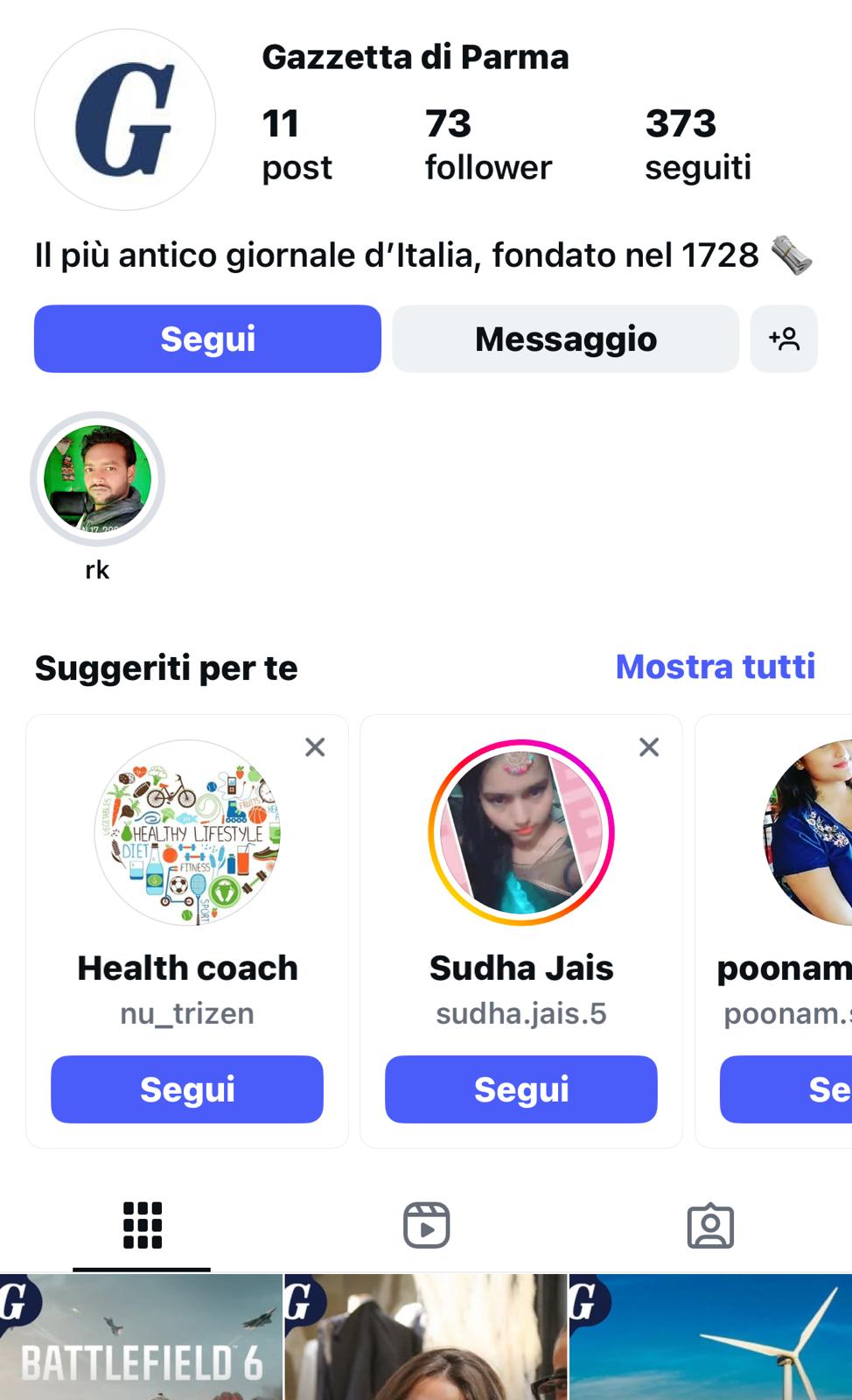 Continuano le segnalazioni dei lettori su richieste d' amicizia sul social Instagram da parte di pagine fake della Gazzetta di Parma con notizie vecchie e copiate. Una grafica simile a quella originale. Ma l'unico originale è: gazzettadiparma.it e di follower ne ha oltre 45 mila con 11 mila post. E non è accompagnato da nomi di persona di ogni provenienza. Non invia strani messaggi privati (soprattutto su Instagram). Un esempio: «Abbiamo creato un nuovo gruppo Whatsapp, rispondete OK per unirvi: condivideremo contenuti e aggiornamenti». Compresi certi «consigli di trading». Ovviamente è una «trappola». L'invito è quello di segnalare il profilo falso attraverso l'apposito funzione su Instagram.