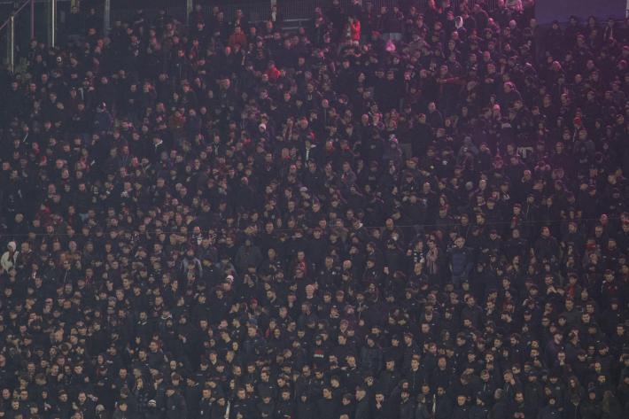 75' Il Milan pressa ma il Parma gli tiene testa. Striscione della curva nord contro la partita fra Milan e Como in Australia