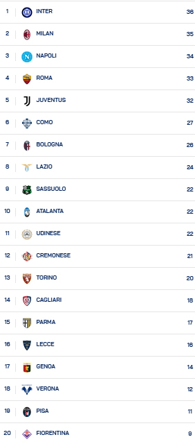Risultati 17esima giornata Serie A