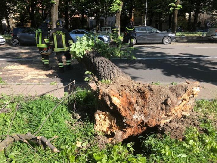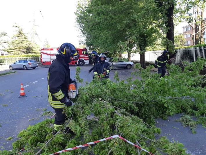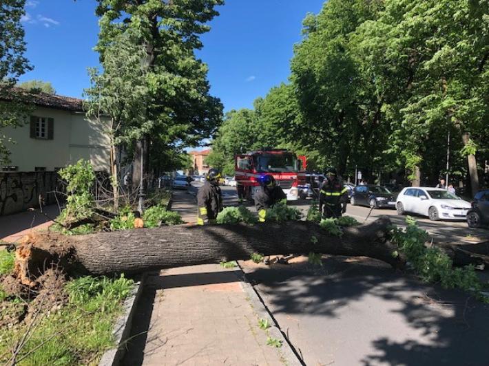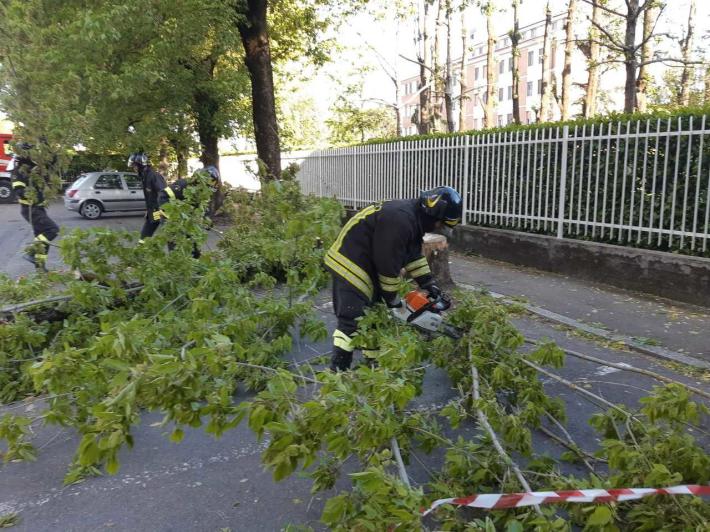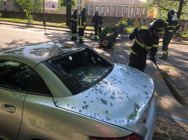 Tragedia sfiorata in viale San Michele per la caduta di uno degli alberi lungo i marciapiedi che costeggiano la via. L'albero è caduto proprio sulla strada, una delle arterie più frequentate in città. Fortunatamente non ci sono feriti: danneggiata però un'auto. Poco tempo dopo un'altra pianta è caduta in strada Casa Bianca. Nel giro di un'ora un grosso ramo in via Leonardo da Vinci ha sfondato un'auto. Ramo caduto anche in piazzale Maestri.
