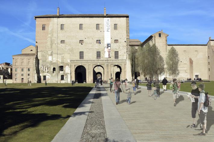 Il primo stralcio dei lavori contempla la sistemazione delle trottatoie in modo da creare un percorso più agevole e maggiormente fruibile per i cittadini, la realizzazione della prima parte di un nuove camminamento trasversale, che partendo dai portici della Soprintendenza, in fondo via Verdi, arriverà di fronte alla sede della Provincia. I lavori di maggior respiro riguardano la realizzazione di una vera e propria piazzetta lastricata che si svilupperà nello spazio compreso tra i portici dove ha sede la Soprintendenza, il palazzo dei carabinieri, la Pilotta, nella parte dove si trovano i contrafforti, e circonderà in parte il monumento a Verdi. Assessore, progettisti e rappresentati della ditta appaltatrice hanno concordato con i rappresentati dei commercianti e del Consiglio dei cittadini volontari di Parma centro di prevedere l'avvio dei lavori partendo dalle trottatoie per raggiungere, andando a ritroso, la zona attorno alla fontana e quella della futura piazzetta nella parte tra il monumento a Verdi, la Pilotta, la Soprintendenza ed il palazzo dei carabinieri, prevedendo un unico accesso al cantiere da via Verdi.