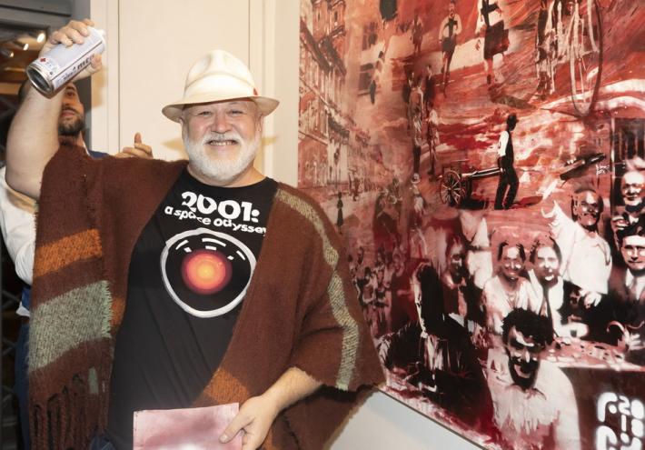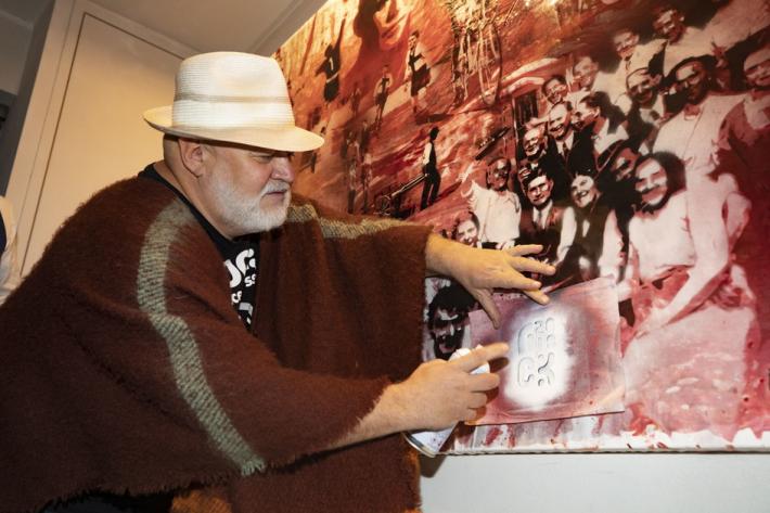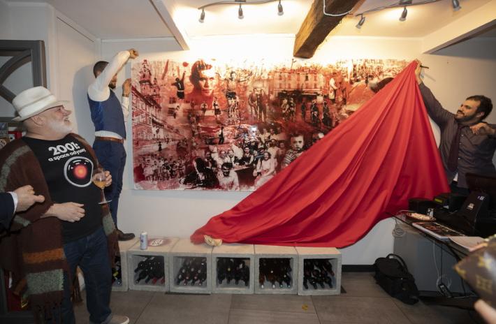 Al ristorante Opera Viva in strada Inzani, l’artista Flavio Kampah ha svelato la sua ultima opera, dedicata all'Oltretorrente: stencil su tela delle dimensioni di 300x150 cm creato per OperaViva. Ecco le foto di Anna Rita Melegari.