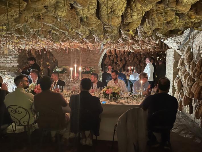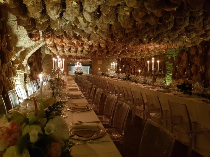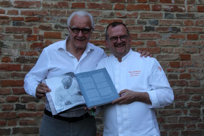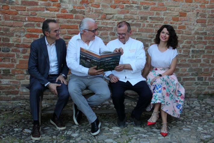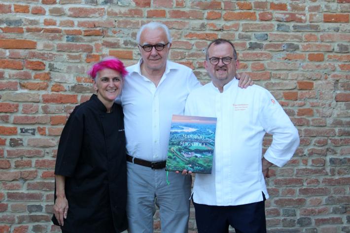 La storia e le ricette del cuoco stellato Massimo Spigaroli, conosciuto in tutto il mondo per i suoi culatelli, sono diventate un libro. Il volume "Massimo Spigaroli, una mia idea di cucina gastrofluviale" (Multiverso Edizioni) è stato presentato ieri sera, lunedì 16 maggio all'Antica Corte Pallavicina di Polesine. Il volume è diviso in due parti. La prima racconta la storia della famiglia Spigaroli, del bisnonno di Massimo, Carlo, di papà Piren e mamma Enrica, del fratello Luciano e della zia Emilia che ha tramandato a Massimo tecniche e ricette di cucina. Lo scritto racconta la nascita dell'Antica Corte Pallavicina, dei prodotti che nascono nel territorio della Bassa parmense, di come, assieme ad altri Massimo sia riuscito a creare il Consorzio di Tutela del Culatello di Zibello Dop, della Stella Michelin, degli allievi che si sono formati presso la sua cucina. I testi sono stati preparati e realizzati dal giornalista Luigi Franchi, direttore della rivista Sala & Cucina e amico del cuoco, e contengono anche molte testimonianze di persone di spicco che hanno avuto un peso importante nella vita dello chef e dei suoi allievi. La seconda parte riporta le ricette di Massimo Spigaroli, che lo hanno portato a diventare uno chef stellato. La cucina di Massimo Spigaroli è definita "gastrofluviale" per far ben intendere ciò che offre il territorio della Bassa parmense, lambito da fiume Po, in termini di biodiversità e naturalità. La prefazione è stata firmata dal grande chef e imprenditore Alain Ducasse, che ha partecipato alla spettacolare serata culminata con una straordinaria cena di gala nelle antiche cantine dei culatelli.