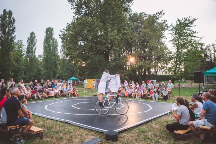 E ieri sera si è replicato con venti spettacoli di acrobatica aerea, mimo, giocoleria, equilibrismo, musica, fino a mezzanotte quando si accenderanno le luci del palco sul concerto «cosmico rock» degli inglesi Henge.