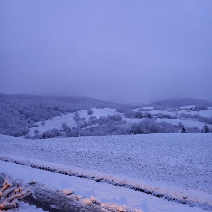 Nelle foto che pubblichiamo, la coltre bianca di questa mattina sulle colline di Langhirano e Calestano e a Tarsogno.